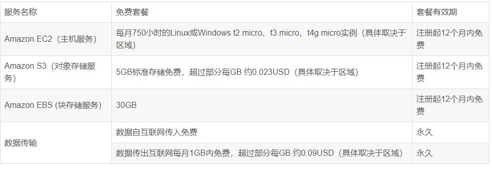 由于亞馬遜云科技服務(wù)種類較多,且計(jì)費(fèi)詳細(xì),很多用戶有些看不懂,所以對(duì)使用亞馬遜云望而卻步。其實(shí)亞馬遜云科技很多服務(wù)都有免費(fèi)套餐,以讓用戶體驗(yàn),這些服務(wù)的免費(fèi)套餐,搭建一個(gè)私人網(wǎng)盤綽綽有余。由于亞馬遜云海外區(qū)僅需個(gè)人信用卡就可以注冊(cè),所以我們以海外區(qū)為例。我們可以從以下鏈接亞馬遜AWS海外區(qū)域賬戶免費(fèi)套餐_免費(fèi)云服務(wù)-AWS云服務(wù) 看到亞馬遜云哪些服務(wù)具備免費(fèi)套餐: